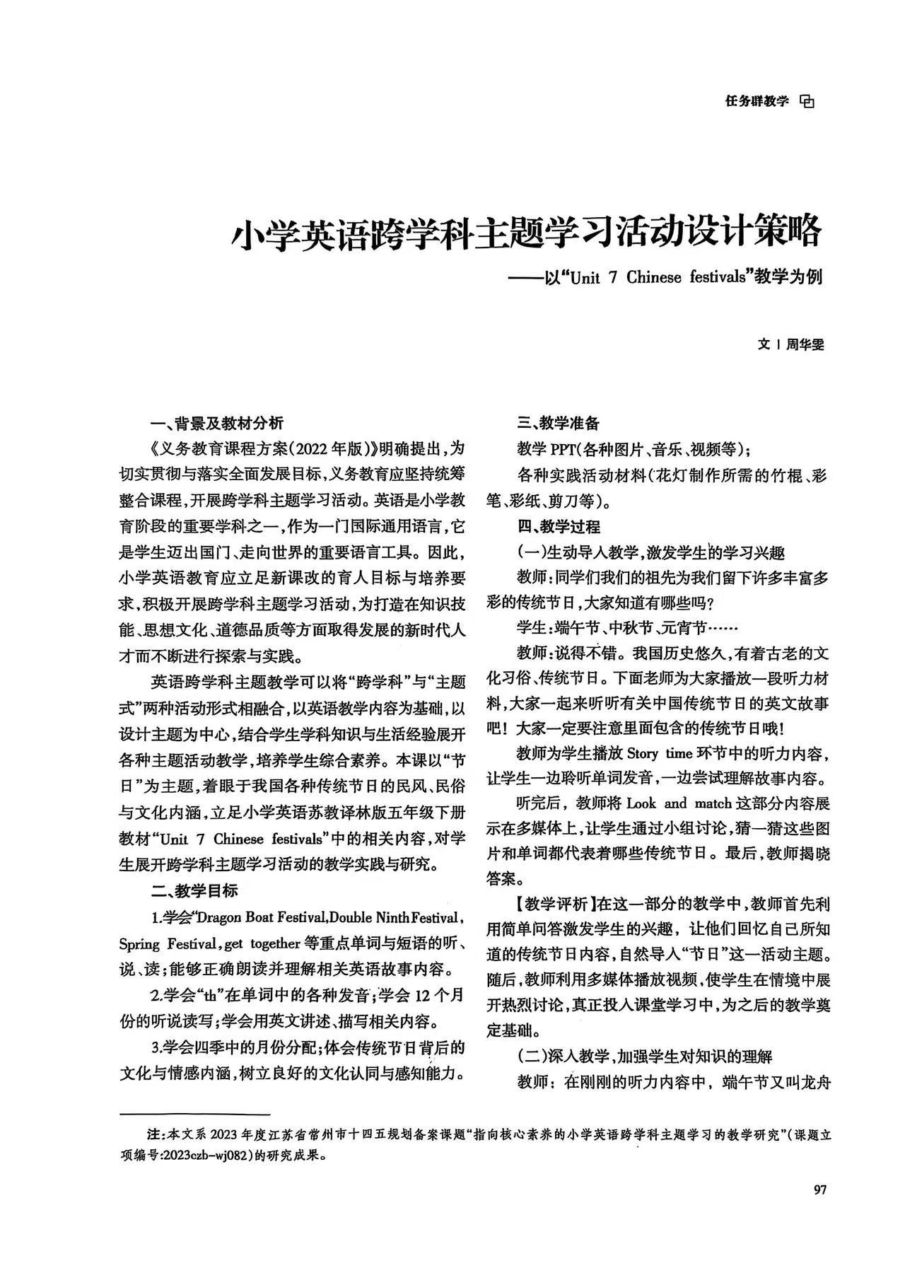 > 课题目录 > 指向核心素养的小学英语跨学科主题学习的教学研究 > 成果展示 > 发表、获奖论文