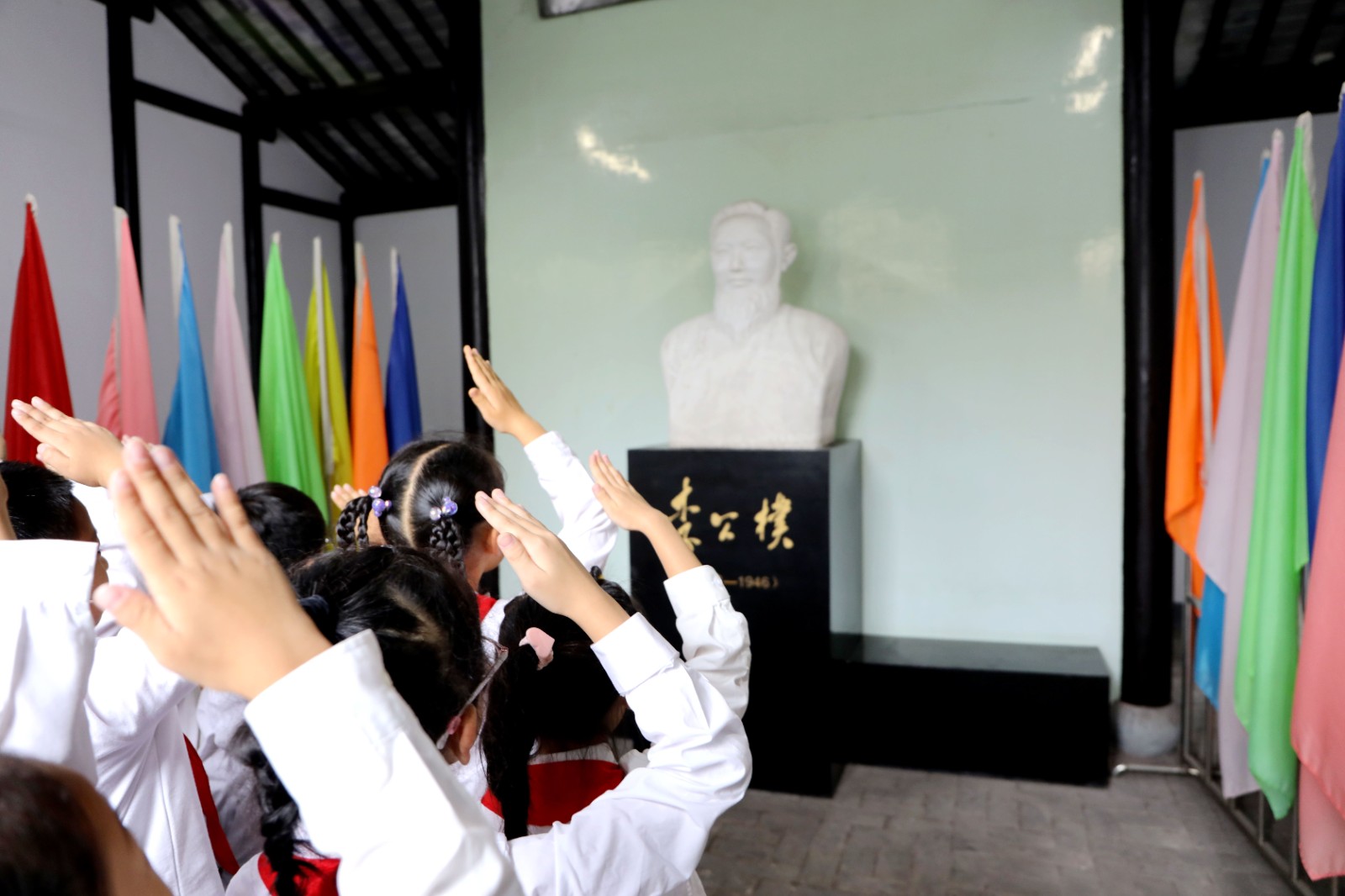 青瓦白墙的李公朴故居内,一场特殊的 “法治启蒙课” 正在悄然展开。在五年级志愿者的引导下,同学们沿着李公朴先生的人生轨迹,从他少年时勤奋求学的经历,到投身抗日救亡、为民主事业奔走的壮举,一步步探寻革命先辈与 “法治” 的不解之缘。“1936 年,李公朴先生与沈钧儒等‘七君子’,为了反对内战、呼吁抗日,即使面临被捕的风险,也始终坚持用合法的方式争取民族权益,这就是最早的‘法治信仰’!” 志愿者们结合陈列馆内的文献资料、老照片,将抽象的法治理念融入具体的革命故事,让同学们明白:无论是过去还是现在,“依法行事、坚守正义” 都是推动社会进步的重要力量。