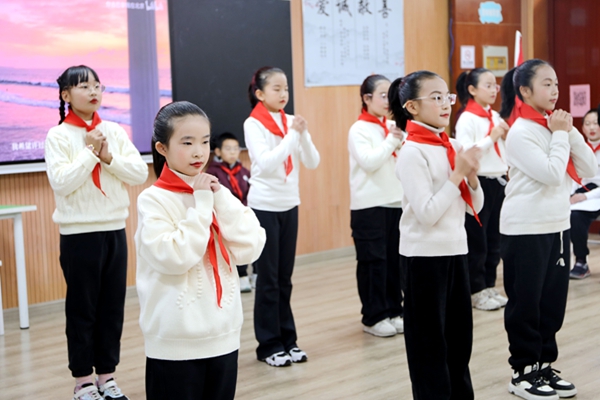 王研辅导员执教《学红色精神 做时代少年》少先队活动课,课堂上,队员们通过红色故事分享、情景演绎、知识问答等形式,重温革命岁月,感悟红色精神,树立起“传承红色基因,争做时代新人”的信念。丁梦娜辅导员带来《感恩于心 与爱同行》主题活动课,以生活化的场景、温情的互动游戏,引导队员们感恩父母养育、老师教诲、同伴相助,在潜移默化中培育感恩情怀,学会用行动传递爱意。两堂活动课设计新颖、形式生动,充分展现了少先队活动课的趣味性与育人价值,赢得在场教师的一致好评。
