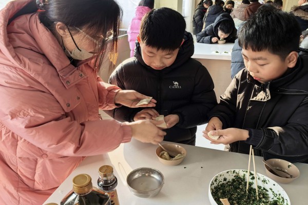 在家长老师的悉心指导下,同学们热情高涨,纷纷拿起馄饨皮跃跃欲试。虽然起初动作略显笨拙,有的馅料放多了溢出来,有的捏合不紧实容易散开,但大家毫不气馁,认真模仿、反复练习。教室里充满了欢声笑语,家长与孩子们相互交流,同学之间彼此借鉴,现场氛围温馨又热闹。经过一番努力,一个个形态各异却饱含心意的馄饨陆续成型,整齐地摆放在托盘里。待所有馄饨包好后,家长及时将馄饨煮熟,当热气腾腾的馄饨端上桌时,孩子们迫不及待地品尝起自己的劳动成果。咬上一口,鲜香的汤汁与饱满的馅料在口中交融,大家脸上都洋溢着自豪与满足的笑容,纷纷表示“自己包的馄饨最香”。